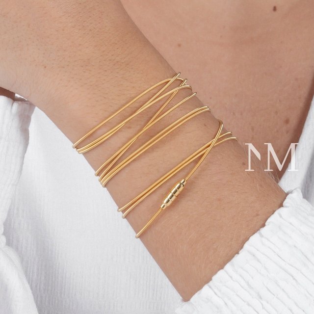 Pulseira Corda de Violão que da proximadamente 9 voltas.